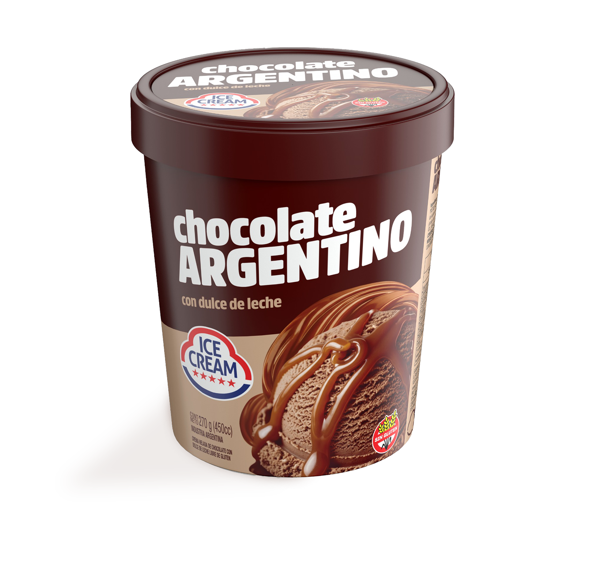 Chocolate argentino. Postre de crema helada de chocolate con dulce de leche libre de gluten.