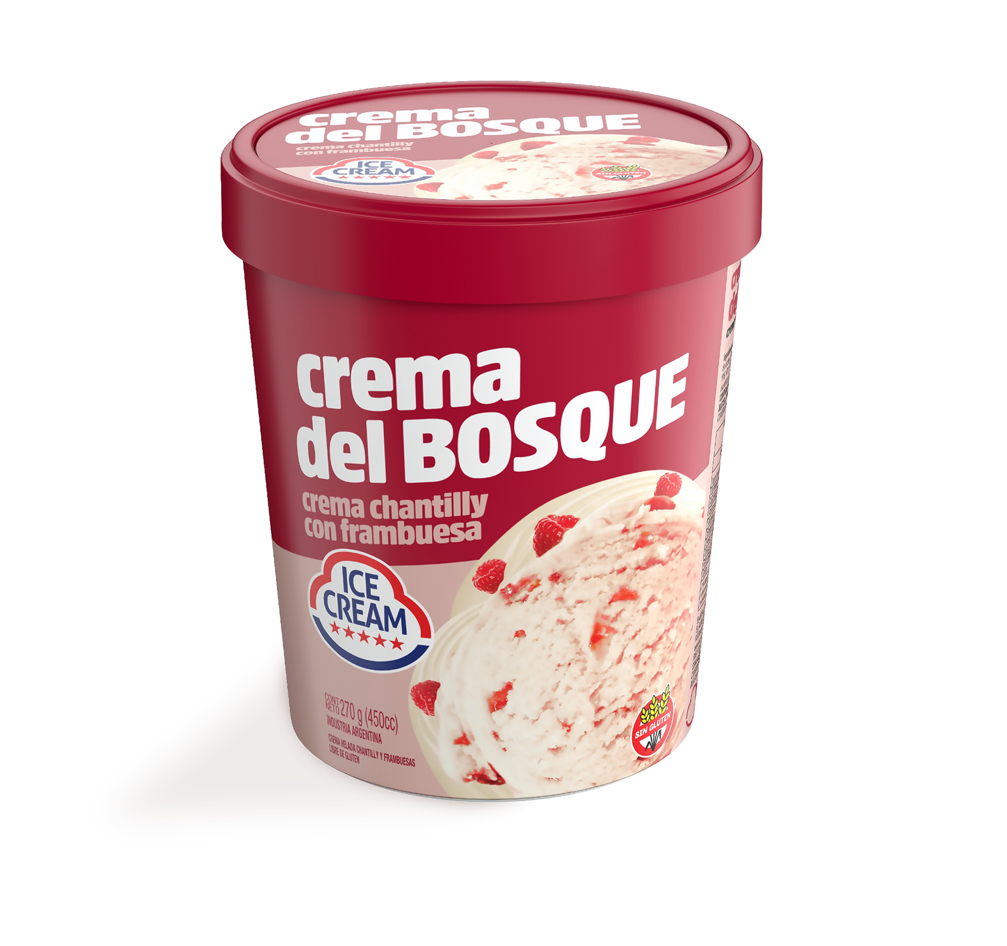 Crema del bosque. Postre de crema helada chantilly y frambuesas libre de glunte.