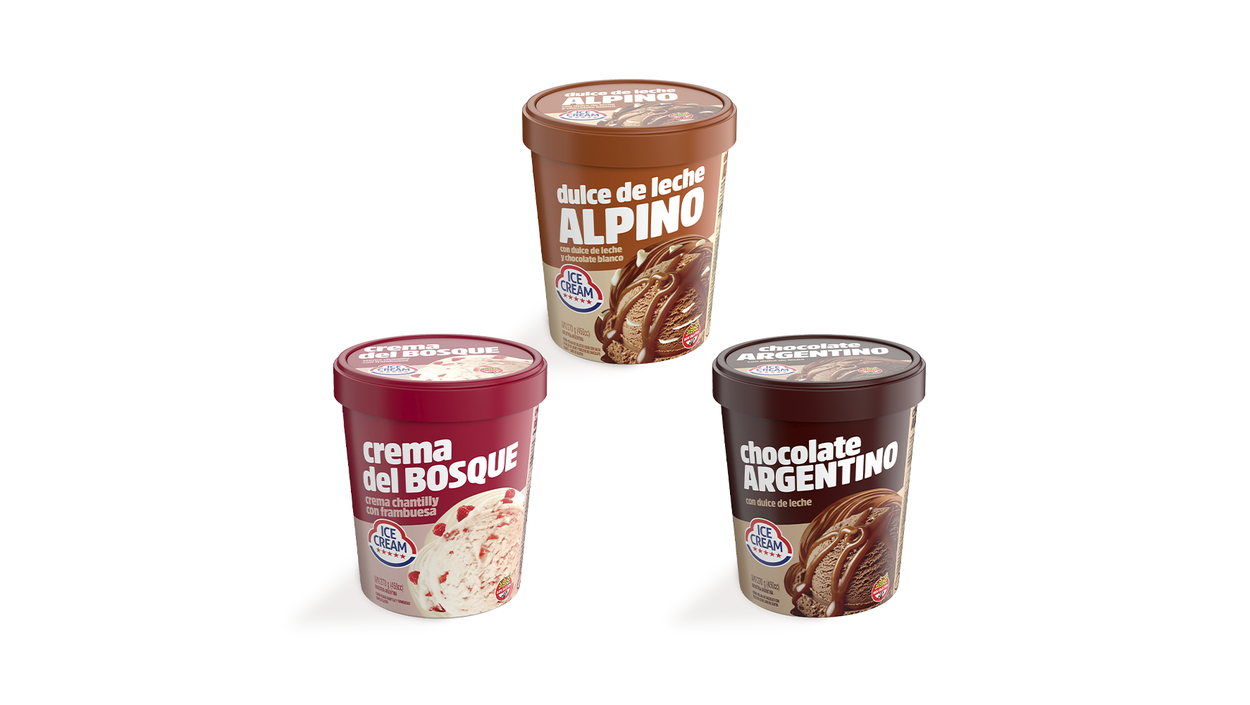Crema helada de chocolate sabor a vainilla y sabor a frutilla libre de gluten.