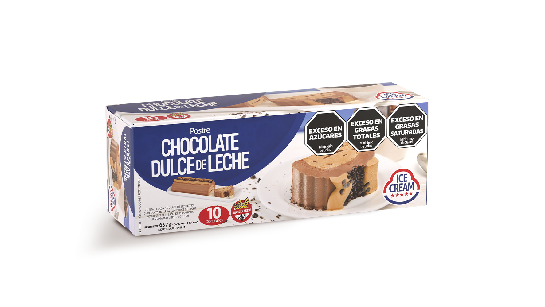 Dulce de Leche: Postre helado de crema americana y crema helada de dulce de leche con baño de repostería con dulce de leche libre de gluten.